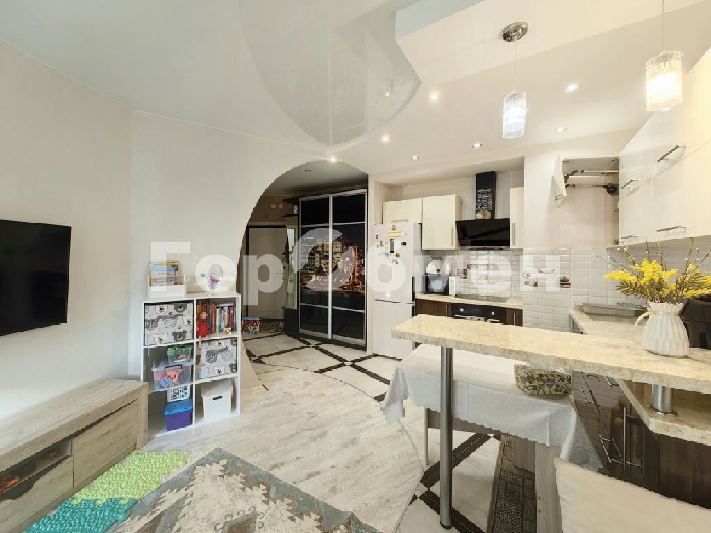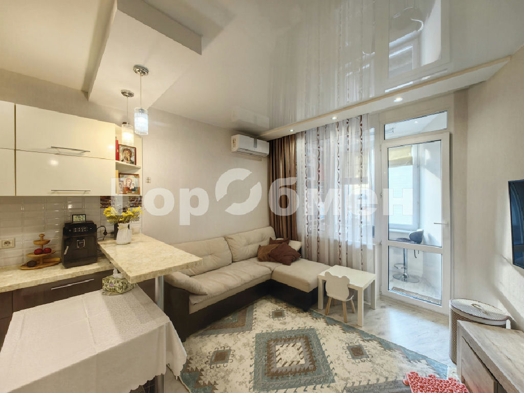 Удобная планировка включает в себя большую кухню-гостиную (21 м2) с выходом на лоджию (2,8 м2), спальню (12,5 м2), совмещенный с/у и коридор.